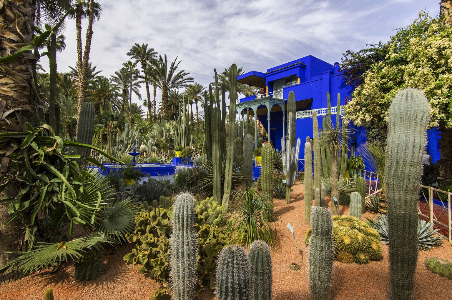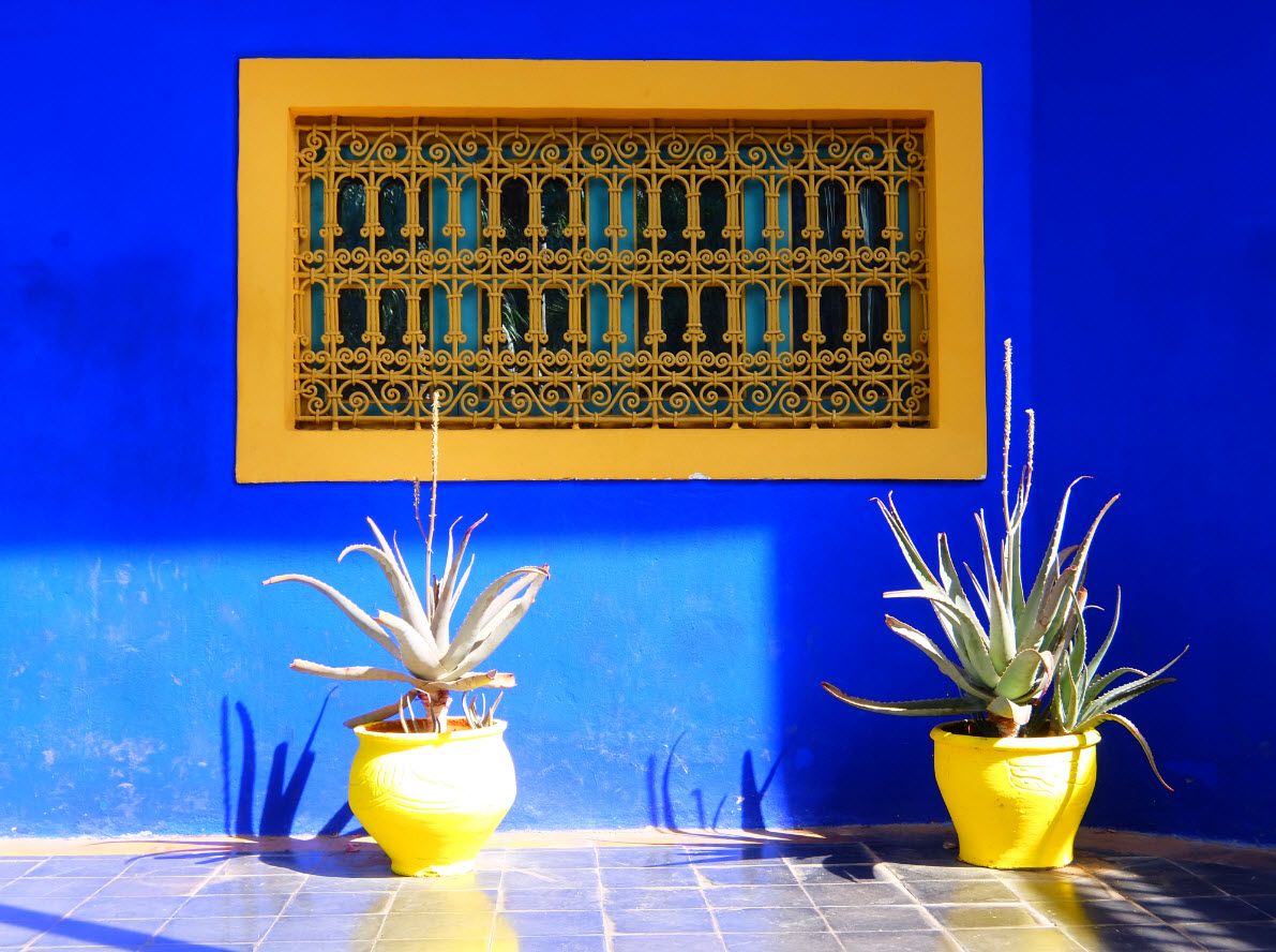 Le jardin adopta la couleur "bleu Majorelle", que l'artiste créa pour exprimer la profondeur et l'intensité de l'océan.