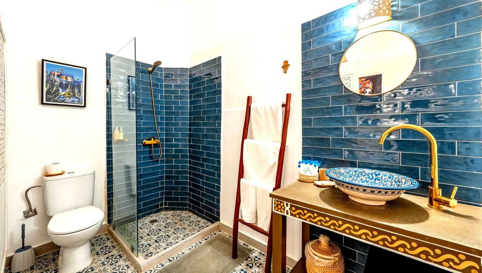 Equipements : Salle de bain privée, douche, climatisation réversible, WiFi gratuit, penderie, produits de toilettes aux ingrédients d origine naturelle de la marque Les sens de Marrakech , linge de maison .