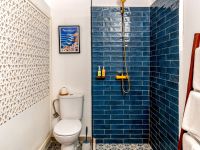 La salle de bain simple et élégante comprend une douche, des toilettes individuelles et un lavabo. La chambre est équipée d'une climatisation réversible, ce qui lui permet de rester fraîche en été et chaude en hiver.