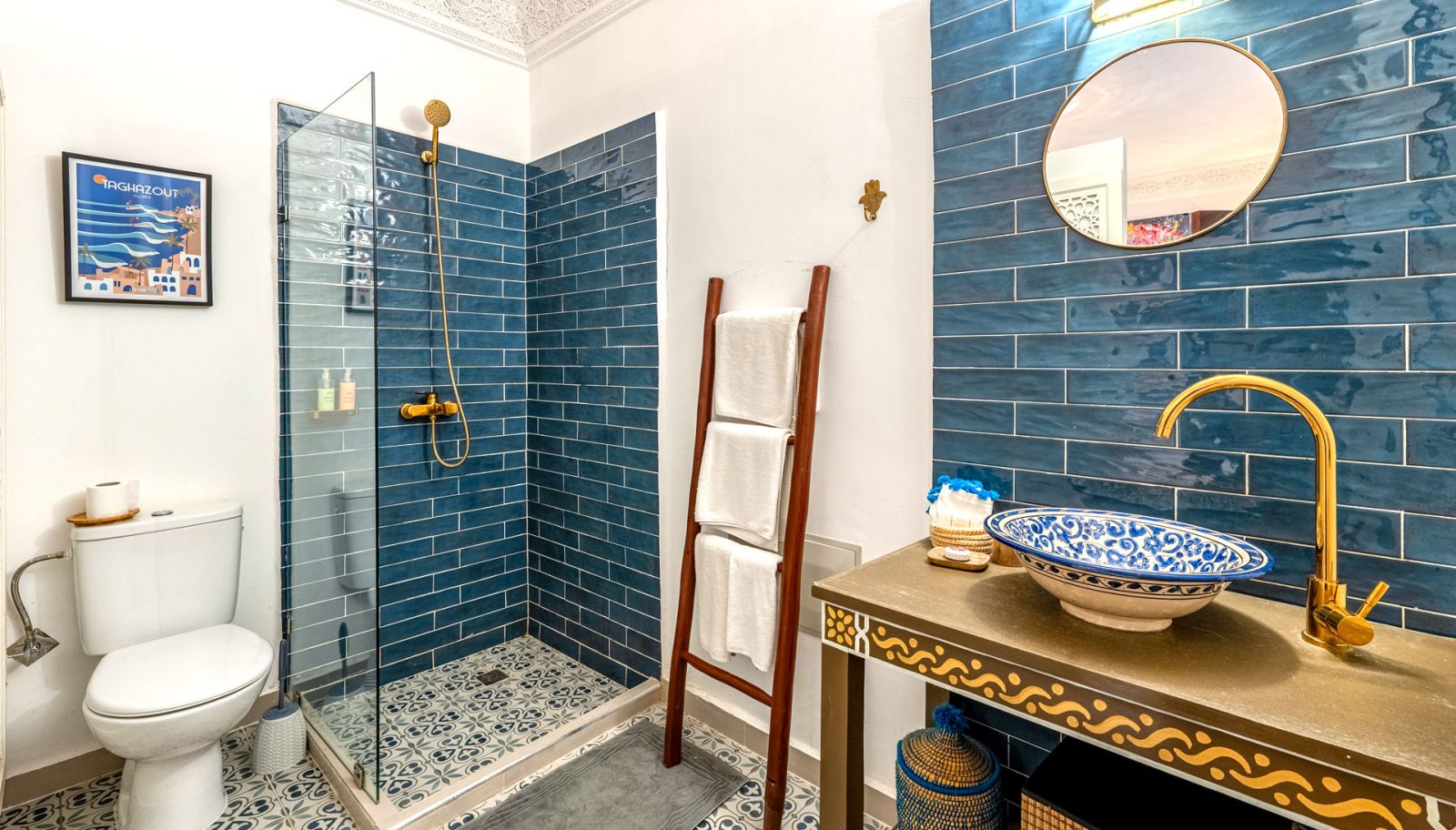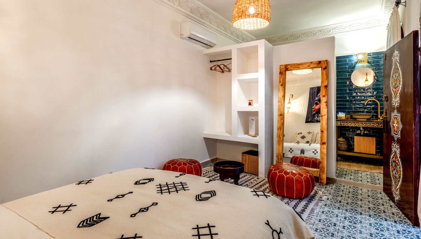Equipements : Salle de bain privée, douche, climatisation réversible, WiFi gratuit, penderie, produits de toilettes aux ingrédients d'origine naturelle de la marque "Les sens de Marrakech" , linge de maison .
