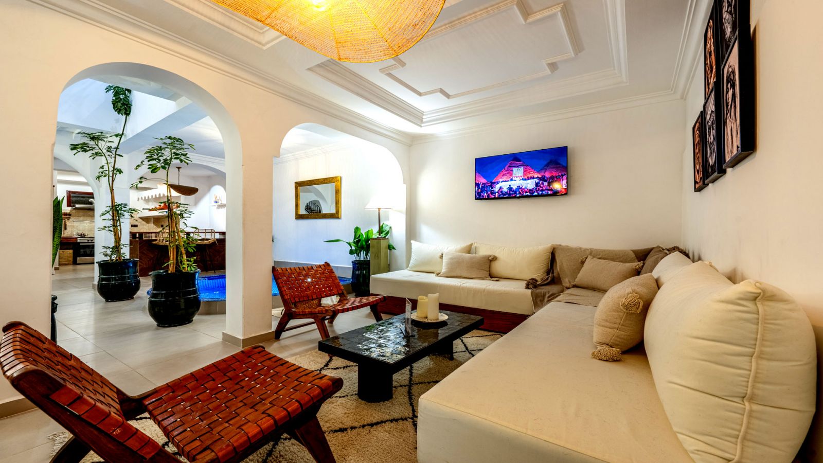 Derrière la porte discrète du Riad Touria, s’ouvre un monde intime où l’Orient se réinvente dans l’élégance. Les volumes apaisants, les matières nobles et la lumière qui caresse les murs créent une atmosphère raffinée, à la fois moderne et empreinte d’authenticité.